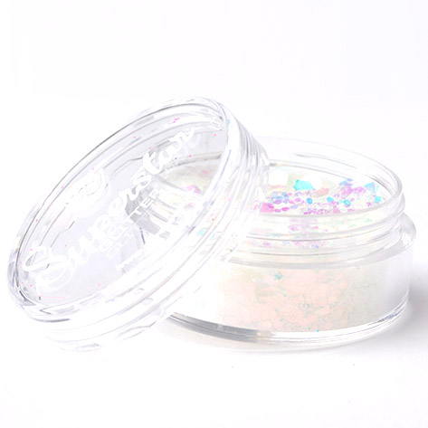 Entra en el colorido y brillante mundo de los Chunky glitter de Superstar. Nuestros brillos están hechos de 100% de tereftalato de polietileno en varios tamaños y son seguros para usar en la piel y el cabello. Para usar junto con el Superstar Glitterless Gel o glittergel.